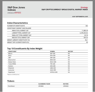 标普数字市场50指数并非简单组合两类资产,而是建立了严格的筛选机制。指数编制规则要求加密货币市值需超过3亿美元,上市公司市值则需超过1亿美元。不仅如此,任何单一资产在指数中的权重都被限制在5%以内,确保了指数的多样性和平衡性。标普道琼斯指数首席产品与运营官卡梅伦·德林克沃特对此表示,随着加密货币从市场边缘逐渐进入全球市场的稳定角色,独立基准可以为数字资产生态系统带来透明度和可访问性。